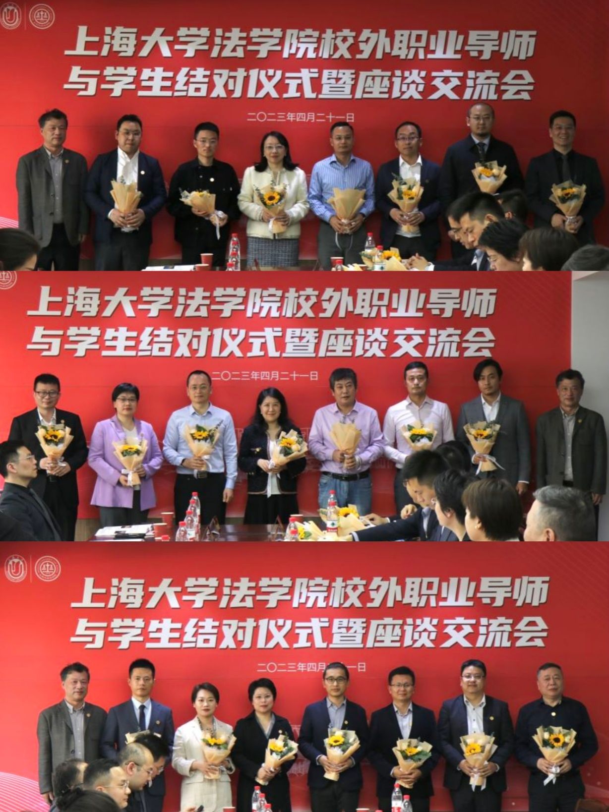 4月21日下午,上海大学法学院校外职业导师与学生结对仪式暨座谈交流会在上海大学宝山校区东区4号楼法学院304会议室顺利举办。上海大学党委常委、副校长聂清,招生与毕业生就业工作办公室主任陆瑾,上海大学法学院校外职业导师陈绍娟、丁彦伶、邓亚崇、康烨、李佳、李伟华、刘洪光、陆剑亭、田磊、温陈静、徐新建、杨士维、余能军、张冰、张鑫、张明波、张松亮、张西东、张振军、周维能、朱国勇,法学院党委书记徐国明、党委副书记、副院长于伟,法学院思政辅导员及结对学生代表参加活动。本次仪式由法学院党委副书记、副院长于伟主持。