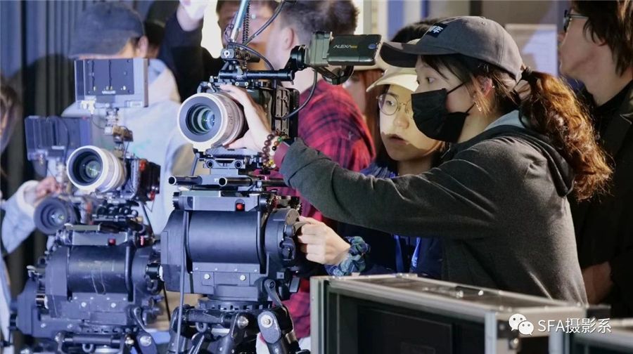 几位摄影系的专业老师也开始“现场教学”,在两台一样的摄影机上分别装上同样焦段的球面镜头和变宽镜头,带领同学现场分辨球面和变宽在成像视角,景深,焦段换算,以及摄影机数据调节方面的异同,同学们自己上手,调参数,装镜头,比较拍摄效果,亲自上手使用,对不同的镜头技术进行使用和体会。