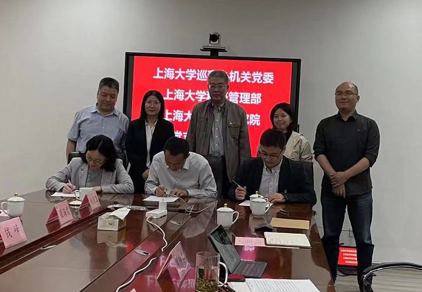 4月19日下午,机关党委巡察办机关党委党支部、机关党委科研管理部党支部、上海大学绍兴研究院党支部联合开展支部结对共建,共建签约仪式在上海大学绍兴研究院举行。党委巡察工作办公室常务副主任、巡察办机关党委党支部书记崔海霞,科研管理部综合办主任、党支部组织委员赵朋卫,上海大学绍兴研究院党支部书记陈仲冬出席签约。机关党委书记钱峰与越城区区委组织部副部长、区委人才办常务副主任吴燕,斗门街道党工委组织委员钱宇苹等到场见证指导。
