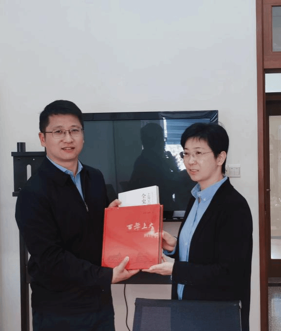 招毕办副主任卢欣为控江中学送上展现控江学子在上大所取得各类荣誉的喜报。招宣组组长、马院党委书记王国建向控江中学赠送《百年上大画传》和《上海大学全史》书籍,并表示希望在大学与高中接续培养、学生创新能力培养、大中学思政课一体化建设、党建共建等方面切实推进合作。
