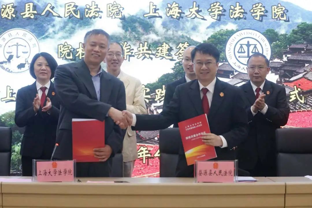 4月26日上午,婺源县人民法院与上海大学法学院合作共建签约暨“上海大学法学院实践基地”揭牌仪式在婺源县人民法院举行。上海大学法学院党委副书记、院长李凤章,婺源县人民法院党组书记、院长李哲出席仪式。仪式由婺源县人民法院党组副书记、副院长郭学敏主持。上海大学法学院学科建设与对外联络办公室主任贺斌及婺源县人民法院全体干警参加仪式活动。