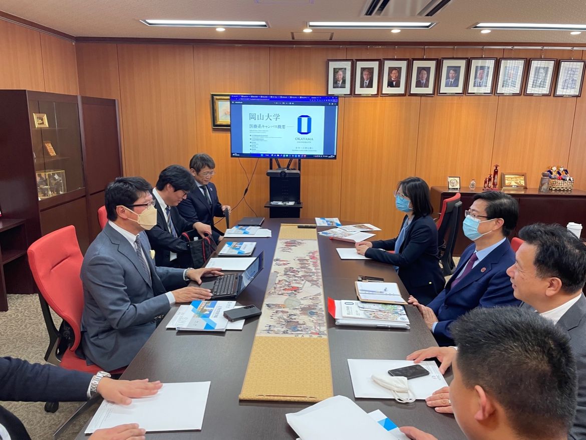 刘斌一行首先访问了冈山大学。冈山大学校长那须保友,副理事、副校长佐藤法仁等接见刘斌一行。刘斌简要回顾了自2019年来两校合作的良好基础,汇报了医学院发展现状,介绍了未来的合作计划。他表示,上海大学高度重视与冈山大学的交流合作,希望双方可以尽快签署战略合作协议,在学科建设、人才培养、科研合作、师资互聘等方面开展全面合作。那须保友对刘斌一行的到来表示热烈欢迎,他表示,近年来尽管受疫情影响,双方仍然积极通过线上开展交流活动,希望未来两校能够通过优势互补、资源共享,共同创造合作共赢美好未来。随后,在冈山大学副理事成濑惠治的陪同下,刘斌一行参观了冈山大学中心医疗研究中心,并就BNCT技术进行深入交流。