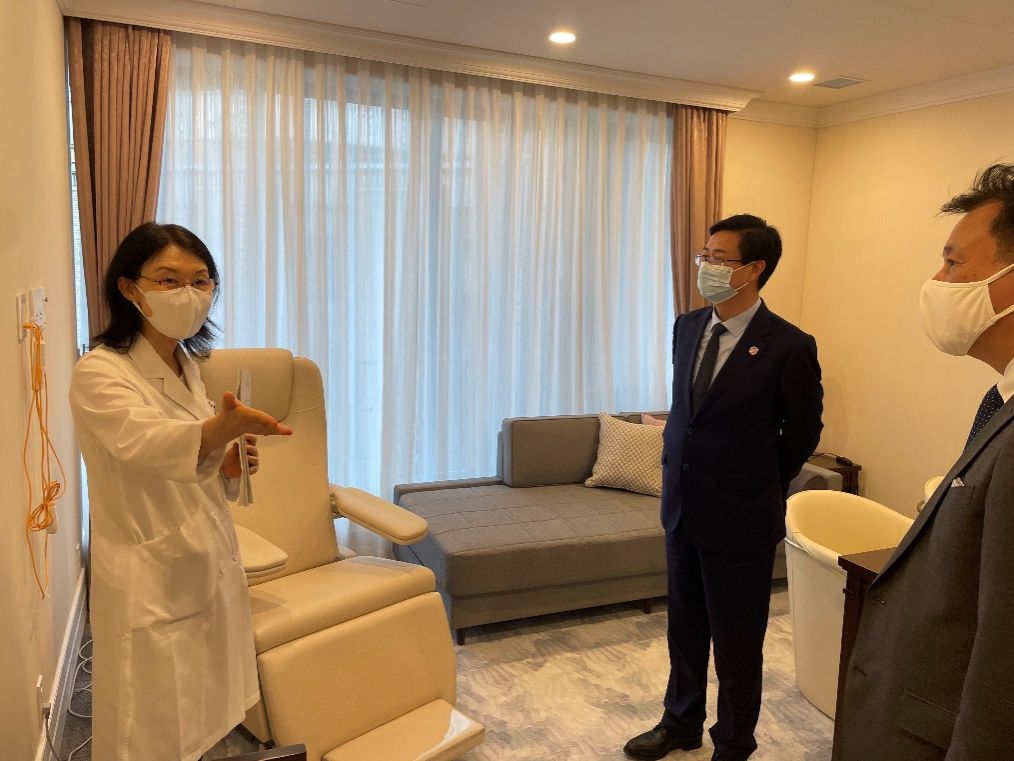 刘斌一行第三站到访东京大学,相继拜会了东京大学医学部现任部长南学正臣、前任部长冈部繁男。南学正臣表示,东京大学一向重视国际交流与合作,2022年举办的首届上海大学-东京大学医学交流日活动意义重大,期待双方可以继续开展深入合作。会上,双方还就第二届医学交流日活动的举办进行了深入探讨。会后,在东京大学附属医院国际体检中心主任饭塚阳子的陪同下,刘斌一行参观了东京大学附属医院国际体检中心,学习了体检中心先进的国际化服务理念。
