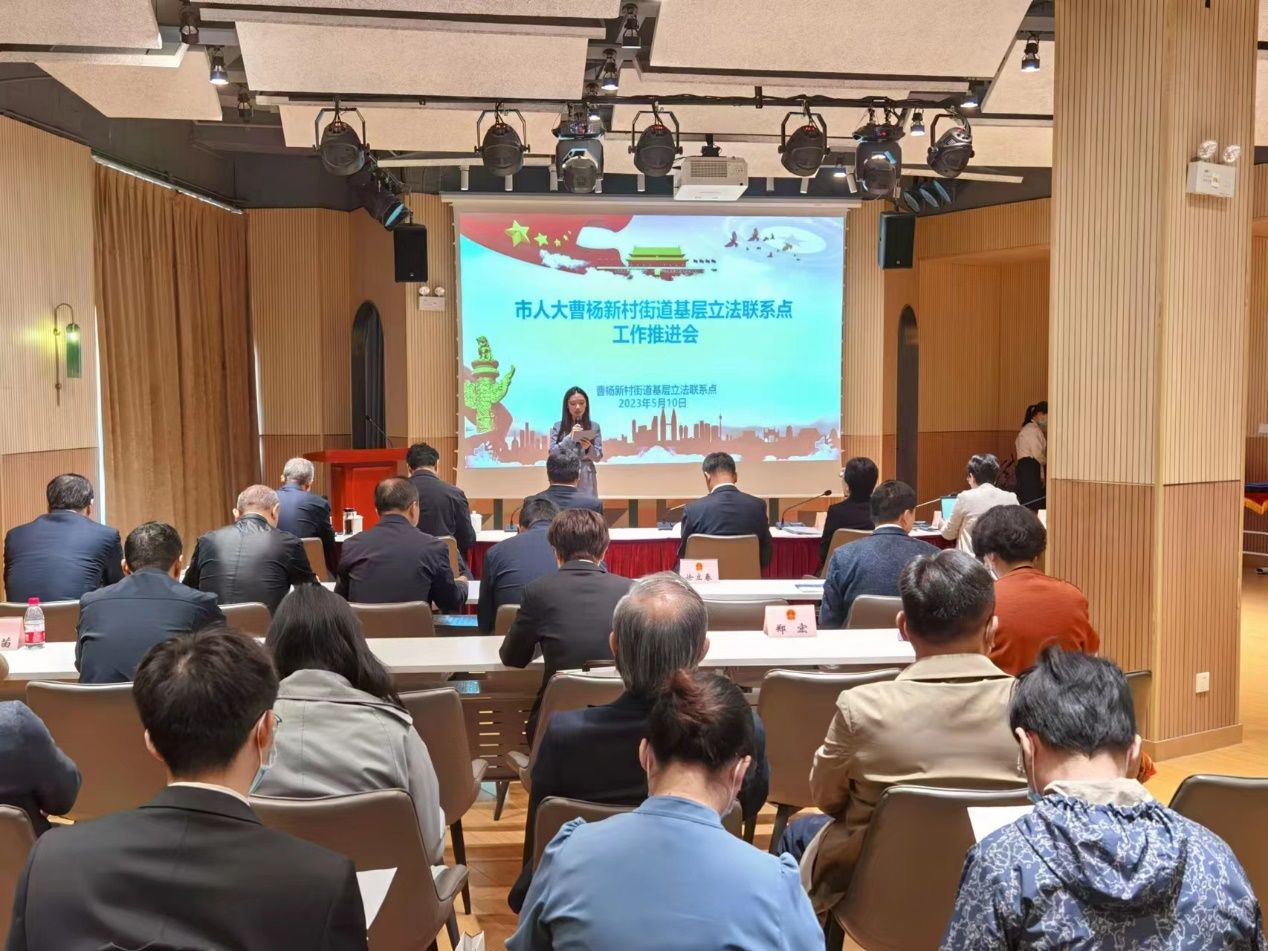 为深入学习贯彻党的二十大精神,践行全过程人民民主重要理念,进一步高标准、高质量做好基层立法联系点的各项工作,5月10日上午,曹杨新村街道组织召开“市人大曹杨新村街道基层立法联系点工作推进会”。上海大学法学院院长李凤章、学科建设与对外联络办公室主任贺斌与市人大常委会法工委、普陀区人大常委会、市法学会、曹杨新村街道领导及基层立法联系点顾问团队、高校专家团队、律师团队,部分人大代表、立法信息采集点代表、信息员代表、居民代表等70余人出席了会议。