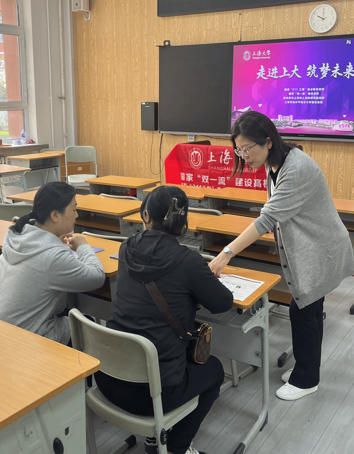 5月11日-12日,黑龙江招宣组在大庆实验中学、哈尔滨师范大学附属中学两所高中开展了考生家长招宣咨询会,通过播放宣传片、发放宣传手册、宣讲讲解等方式,2场宣讲共有100余名家长前来参加,招宣组老师与他们进行亲切交流,详细解答家长提出的问题,让考生家长对上海大学及专业有了明确的了解。