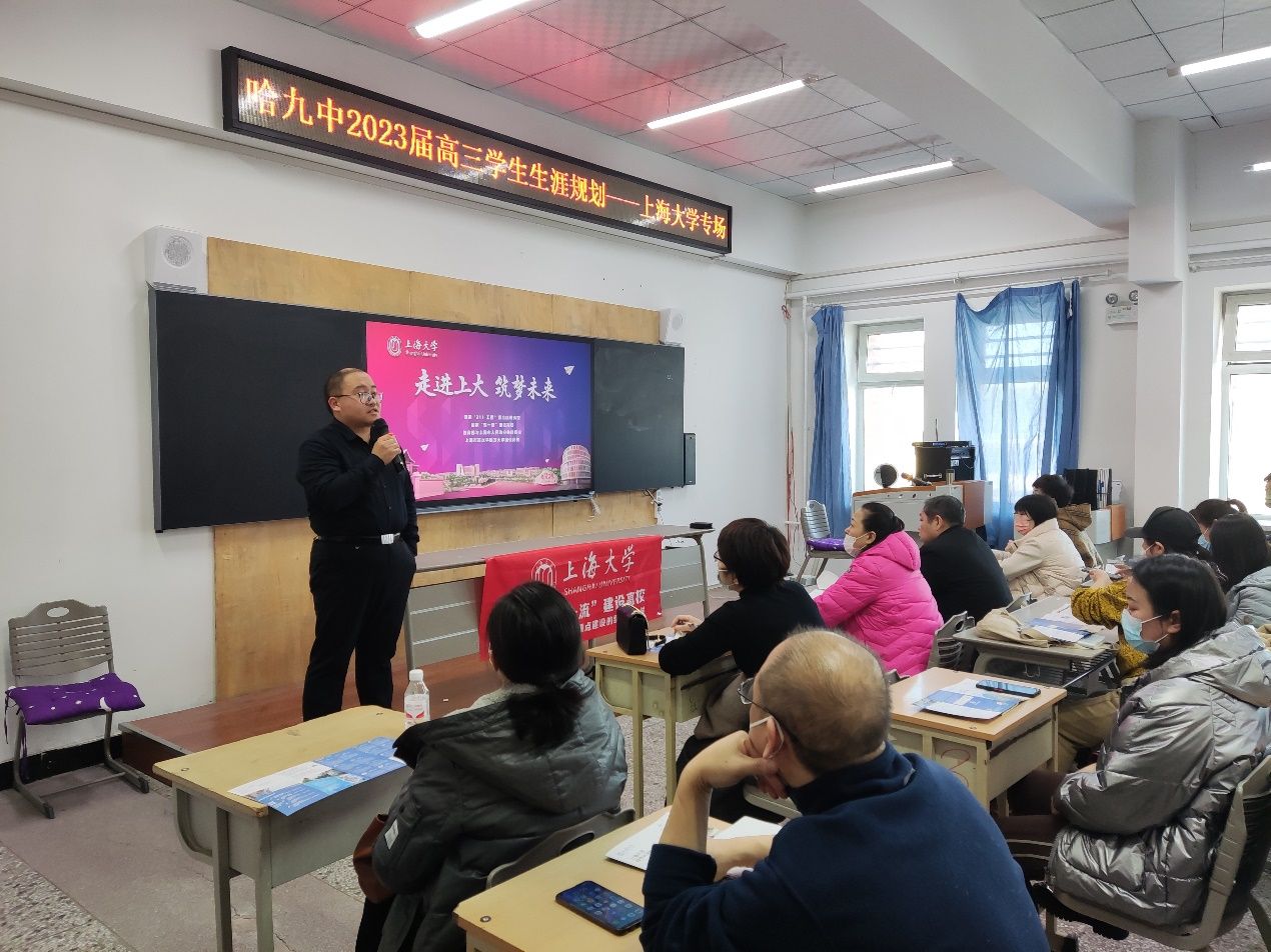 5月13日,黑龙江招宣组先后又来到哈尔滨市第三中学、黑龙江省实验中学,黑龙江招宣组副组长朱晓青从上海大学的历史沿革讲起,介绍了近年来上海大学师资、科研、学科建设等方面取得的显著成就,展示了上海大学在为学生提供一流的成长平台方面做出的努力,也详细解读了上大在黑龙江招生的具体政策。