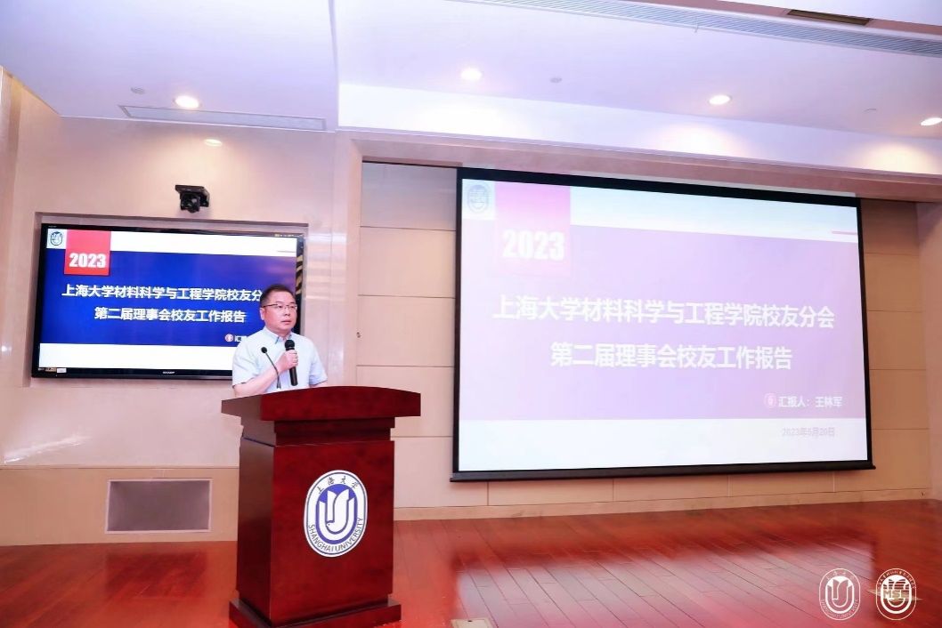 5月20日,上海大学校友会材料科学与工程学院分会理事会换届大会暨第三届理事会第一次会议在上海大学宝山校区乐乎楼学海厅举行。78级电子信息材料系校友,中芯国际集成电路新技术研发(上海)有限公司总监居建华,81级电子系校友,上海元琪科技发展有限公司总经理谢为一,87级高分子材料系校友、材料学院校友理事会副会长江燕,90级电子信息材料系校友、上海宽网网络科技有限公司董事长、材料学院校友理事会副会长杨伟民,上海大学党委副书记欧阳华,采购与招标管理办公室主任、材料学院第二届校友理事会会长王林军,党政办主任秦凯丰,社区学院院长尹静波,对外联络处副处长、校友会办公室副主任杨静,教务部教学建设处处长、本科生书院管理中心副主任杨昕昕,党委研究生工作部副部长席慧霞,通信学院党委副书记/副院长陈涛,材料学院党委副书记、纪委书记刘文庆,副院长黄健,副院长钟云波,省部共建高品质特殊钢冶金与制备国家重点实验室主任任忠鸣,副主任、国重党总支书记邹星礼,材料学院党委委员刘引烽,电子信息材料系主任沈悦,高分子材料系主任颜世峰,材料研究所所长李谋成等七十余名理事参与此次大会。会议由材料学院党委副书记、副院长祁晶主持。