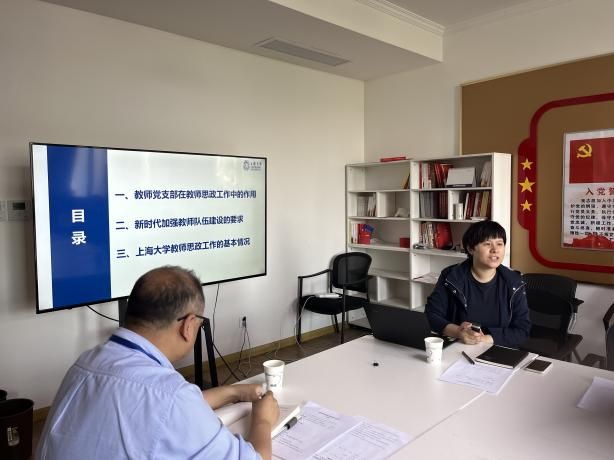 首先,刘文庆同志解读上海大学2023年度师德专题教育工作要求。随后,教师工作部副部长孙琦琰以“发挥教师党支部作用 加强教师思政与师德师风建设”为主题,从教师党支部在教师思政工作中的作用、新时代加强教师队伍建设的要求、上海大学教师思政工作的基本情况三个方面作详细讲解。孙部长着重强调,教师党支部在宣传引导凝聚教师、组织教师开展政治理论学习、推进师德师风建设、推动教师参与思想政治工作、加强对教师的人文关怀具有重要作用,要充分发挥教师党支部的先锋模范作用,涵养师风师德,引导、帮助学院教师安心、热心、舒心、静心从教。最后,与会人员围绕教师思政工作的难点问题,就党支部如何在政治与师德双把关方面发挥作用展开热烈讨论。