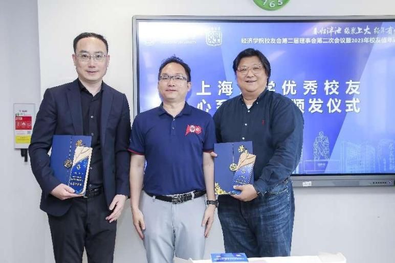 上海大学对外联络处处长,校友会办公室主任陈然对经院校友工作表示肯定,也欢迎经院校友常相聚,共谋学院学校发展。同时,为优秀校友代表陈炯、黄文葳先生颁奖,感谢他们心系母校、为学校发展贡献力量。