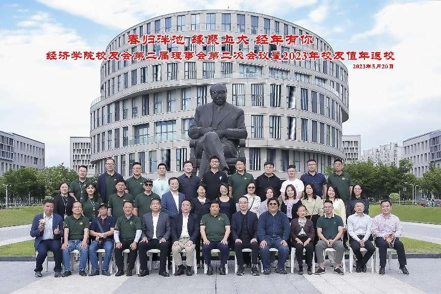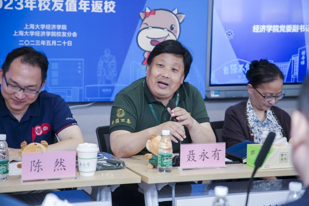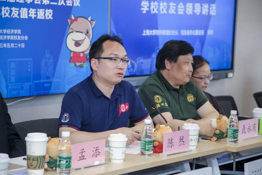 2023年是上海大学的“贯彻之年、统筹之年、奋进之年”,上海大学经济学院值年校友返校主题活动如约而至。5月20日,经济学院在宝山校区举行“春归泮池,缘聚上大,经年有你”经济学院校友分会第二届理事会第二次会议暨2023年校友值年返校活动。上海大学对外联络处处长、校友办主任陈然,经济学院党委书记孟添,党委副书记、常务副院长、校友理事会会长聂永有,党委副书记、副院长、校友理事会秘书长冯玉鑫,人事主管、校友理事会副秘书长陈齐洁,经济学院董勤、章正珊老师以及学院校友分会理事、值年校友和师生代表共同参加了本次活动。
