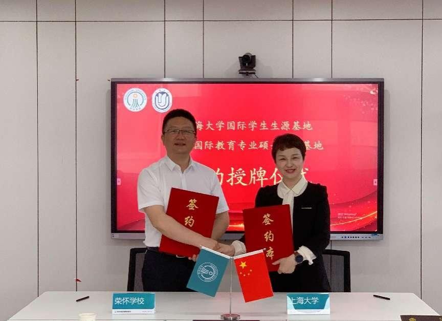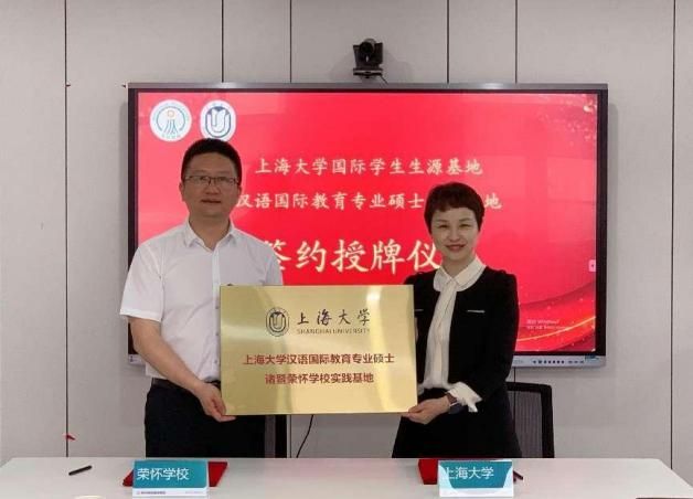 为学习贯彻习近平新时代中国特色社会主义思想,深入调查研究,大力拓展国际学生优质生源,5月19日上午,上海大学国际部副部长、国际教育学院院长李颖洁率队赴诸暨荣怀学校参加上海大学“国际学生生源基地”、“上海大学汉语国际教育专业硕士诸暨荣怀学校实践基地”签约揭牌仪式。荣怀教育管理集团党委书记、总裁张晓晗,人力资源部主任郭柯敏,留学生院校长马菊女,留学生院招生办公室主任金洳伊等出席活动。