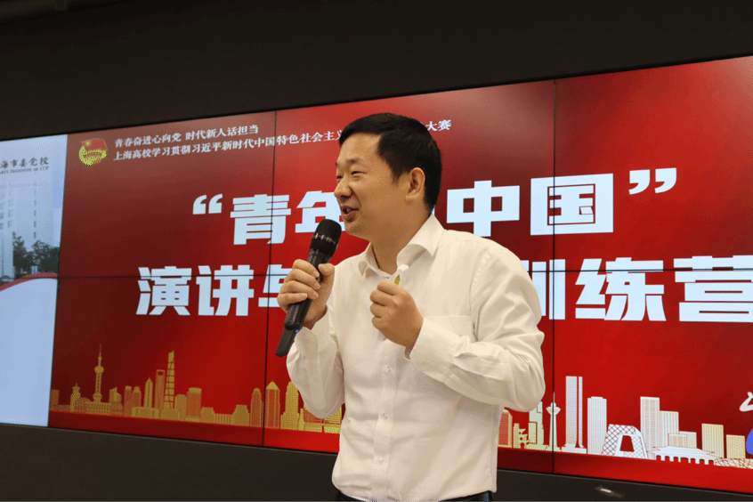 5月28日,上海高校学习贯彻习近平新时代中国特色社会主义思想青年演讲大赛“青年说中国”演讲与口才训练营在上海大学延长校区创新实验中心举行。