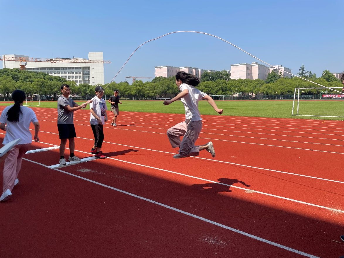 第三个项目是跳大绳,各组选手们先是个人单跳,然后是每位小组选派四位代表一起跳。不仅考验了同学们的运动能力,更是考察了团队的协调合作能力,展现了法学院学子运动的风采!在经过激烈的比拼之后,由第3组同学夺得了本项目的冠军。