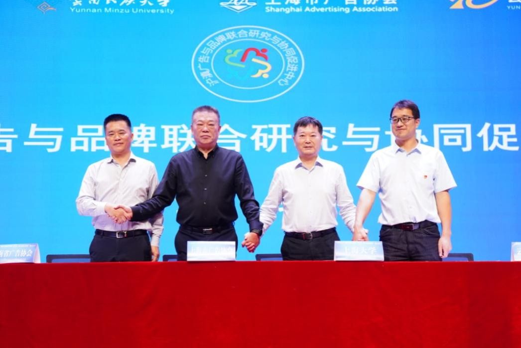 为持续深化沪滇产业协作,推动“云品出滇”与“滇品入沪”,加快探索“上海企业+云南资源”“上海市场+云南基地”等协作方式,6月16日,沪滇广告与品牌联合研究与协同促进中心在云南民族大学揭牌成立。该中心由上海大学、上海市广告协会、云南民族大学、云南省广告协会依托上海广告研究院和云南省广告与品牌研究院合作成立,中心理事会设上海方和云南方执行理事长各1名,上海方和云南方执行副理事长各1名,理事35人,理事单位24家。云南省教育厅、云南省市场监督管理局、云南民族大学等领导共同出席了沪滇广告与品牌联合研究与协同促进中心的成立大会。
