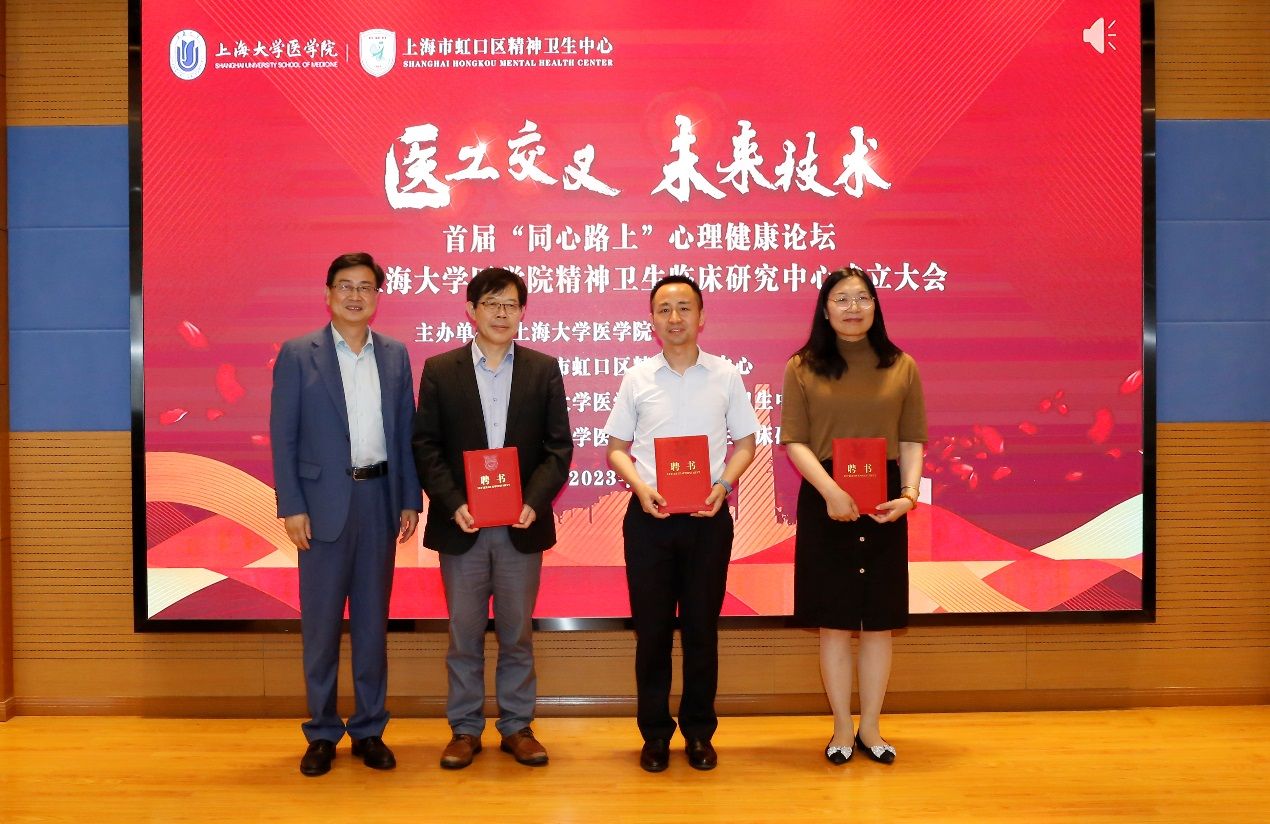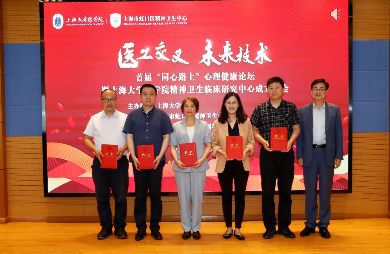 6月25日,首届“同心路上”心理健康论坛暨上海大学医学院精神卫生临床研究中心(以下简称“临床研究中心”)成立大会在虹口区精神卫生中心举行。会议的主题是“医工交叉 未来技术”。虹口区卫健委副主任汤显、上海大学医学院院长刘斌、虹口区精神卫生中心党支部书记施征宇等出席会议。会议由虹口区精神卫生中心院长汪作为主持。