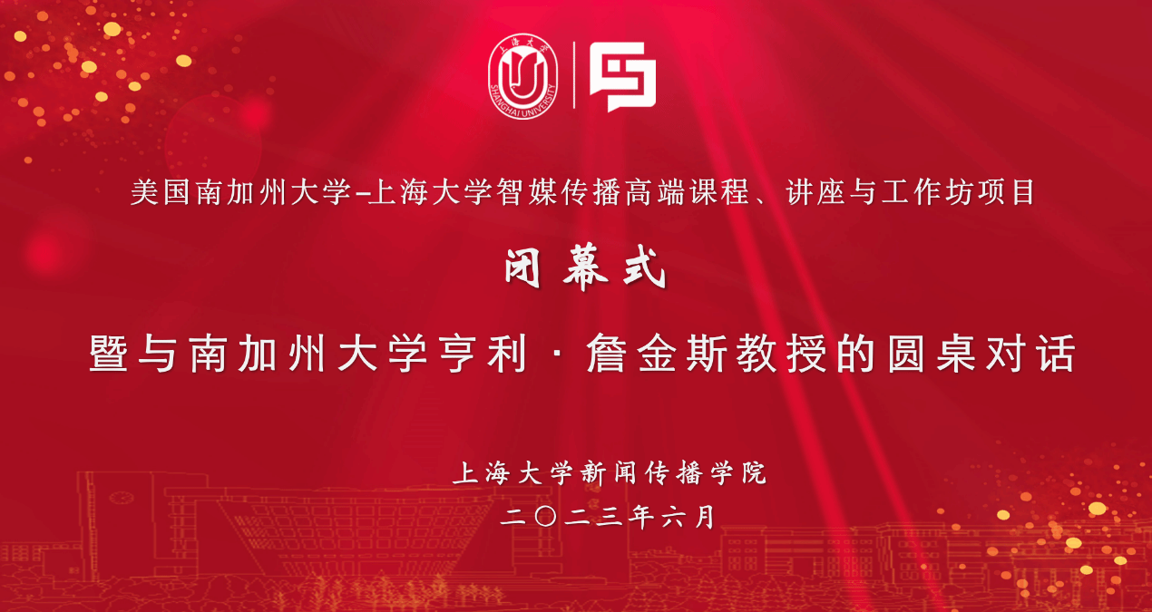 上海大学国际部崔巍副部长为本项目致闭幕词,并对学院未来的国际交流建设提出了展望。首先,他为上海大学能够邀请到詹金斯教授参加国际高端专家交流项目感到十分荣幸,并代表上海大学(国际交流部门)向詹金斯教授表示衷心的感谢。而后他指出,今年与南加州大学合作的“智媒传播高端课程、讲座与工作坊”只是双方合作的开始,希望未来双方在学术研究、人才培养、学科建设、联通业界等方面进行更多合作、培养出更多心怀和平理想、具有开放国际视野的高层次新闻传播人才,同时也为促进中美文化交流、为构建“人类命运共同体”在新闻传播领域做出应有贡献。