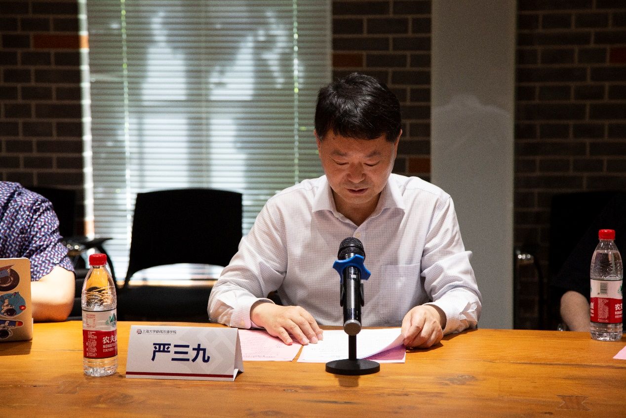 上海大学新闻传播学院院长严三九为本次活动致答谢词,在对参与项目的全体师生表达衷心感谢的同时也对学院未来的国际交流建设提出了展望。首先,他代表上海大学新闻传播学院对詹金斯教授表示衷心的感谢,也向参加圆桌对话的领导、嘉宾、线上线下的老师和同学表示诚挚的欢迎。其次,他简要介绍了詹金斯教授一个半月以来在上海大学所做的重要工作,作了4场高端学术讲座、讲授了6周的《粉丝文化研究导论》高端课程、开设了两个全天的高端工作坊、坐班答疑时前后共有20余人次到办公室与詹金斯教授进行一对一的学术交流等。再次,他表达了对詹金斯教授能够再次来上海大学的期待,也欢迎詹金斯教授未来能够搭建起桥梁,促进上海大学与南加州大学未来在人才培养和科研等方面进行更深入的合作。最后,他对复旦大学、上海交通大学,以及上海大学国际部领导、兄弟学院老师们的大力支持表达了感谢,也预祝本次圆桌论坛取得圆满成功。