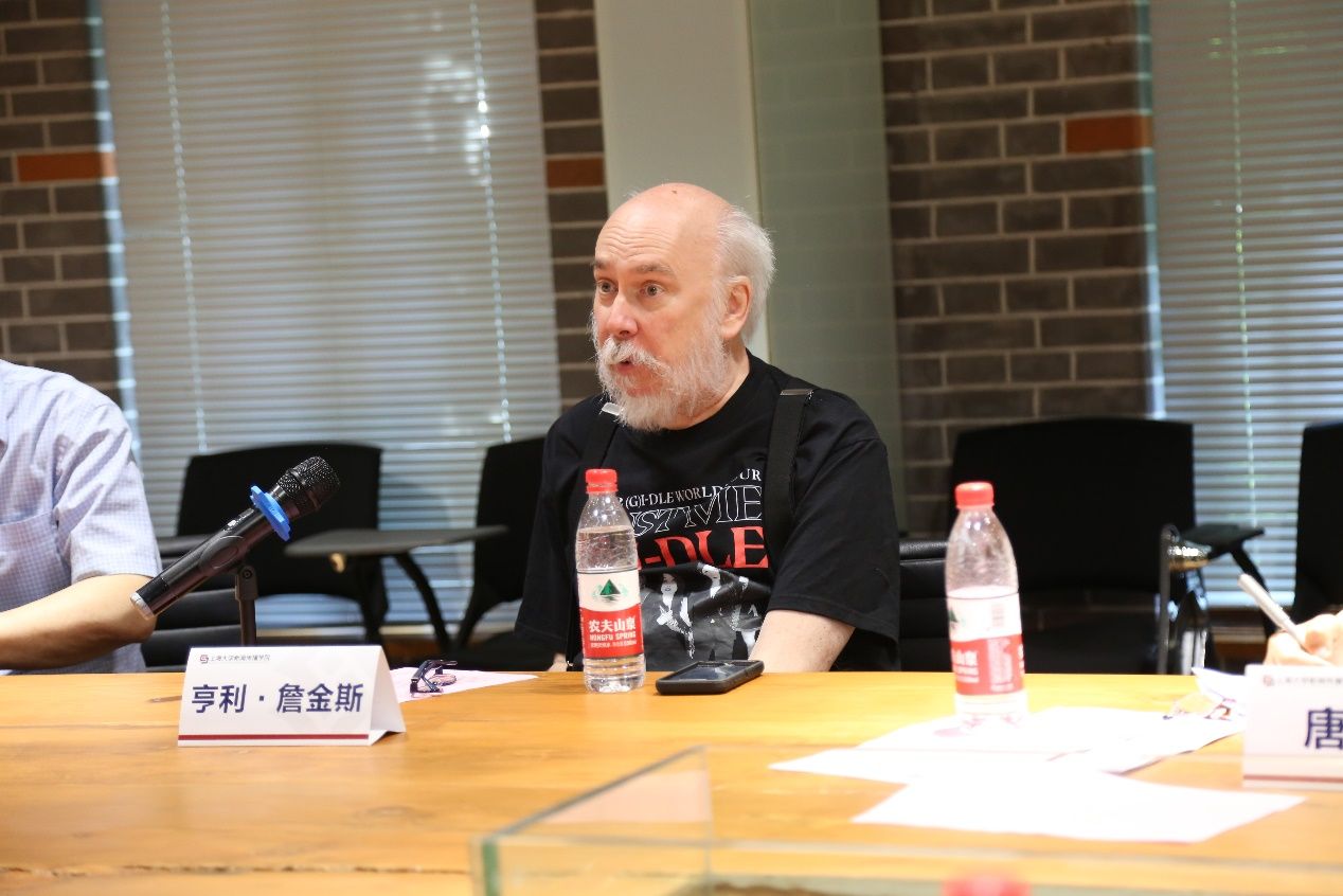 与南加州大学亨利·詹金斯教授围绕“粉丝经济与现代媒介、创意和文化”的跨学科圆桌对谈由上海大学新闻传播学院教授李喜根主持。参加本次圆桌对话的嘉宾除了特约嘉宾南加州大学的詹金斯教授以外,其他主要是来自上海主要新闻传播学院以及上海大学相关学院的老师。他们分别是:复旦大学新闻学院姚建华教授、上海交通大学媒体与传播学院李耘耕副教授、上海大学外语学院唐青叶副院长、上海大学管理学院金晓玲教授、上海大学文学院李海霞副教授、上海大学新闻传播学院尤杰副教授、上海大学新闻传播学院何琦隽讲师、上海大学新闻传播学院刘兆明老师、上海大学上海电影学院王天翼老师、上海大学新闻传播学院屠采撷老师。