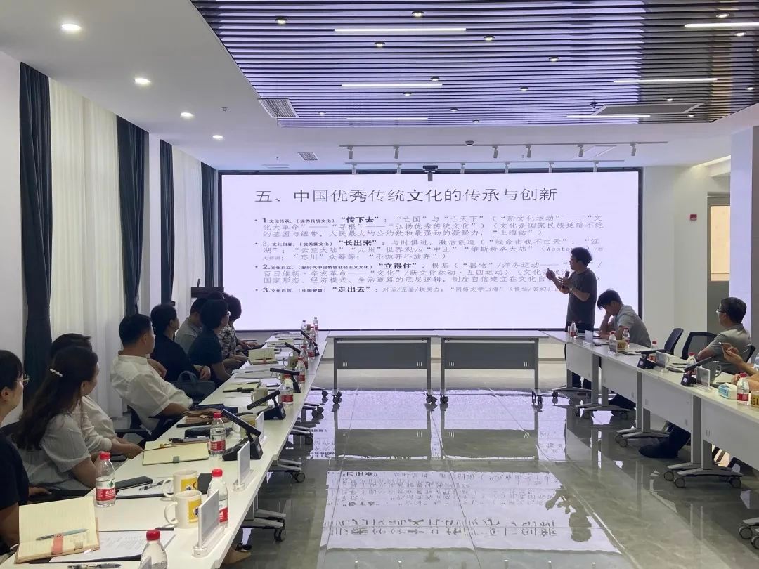 学习会上,与会人员听取了由上海大学中文系教授、上海作协会员许道军作的“学习习近平总书记讲话精神,领略中国优秀传统文化魅力”辅导报告。许教授从习近平总书记有关优秀传统文化论述、传统文化与当代生活、中国优秀传统文化的核心理念与基本精神、中国优秀传统文化的魅力、中国优秀传统文化的传承与创新五个方面重点讲述了如何从中华文明中汲取素材、提炼精髓,努力创造属于我们这个时代的新文化。