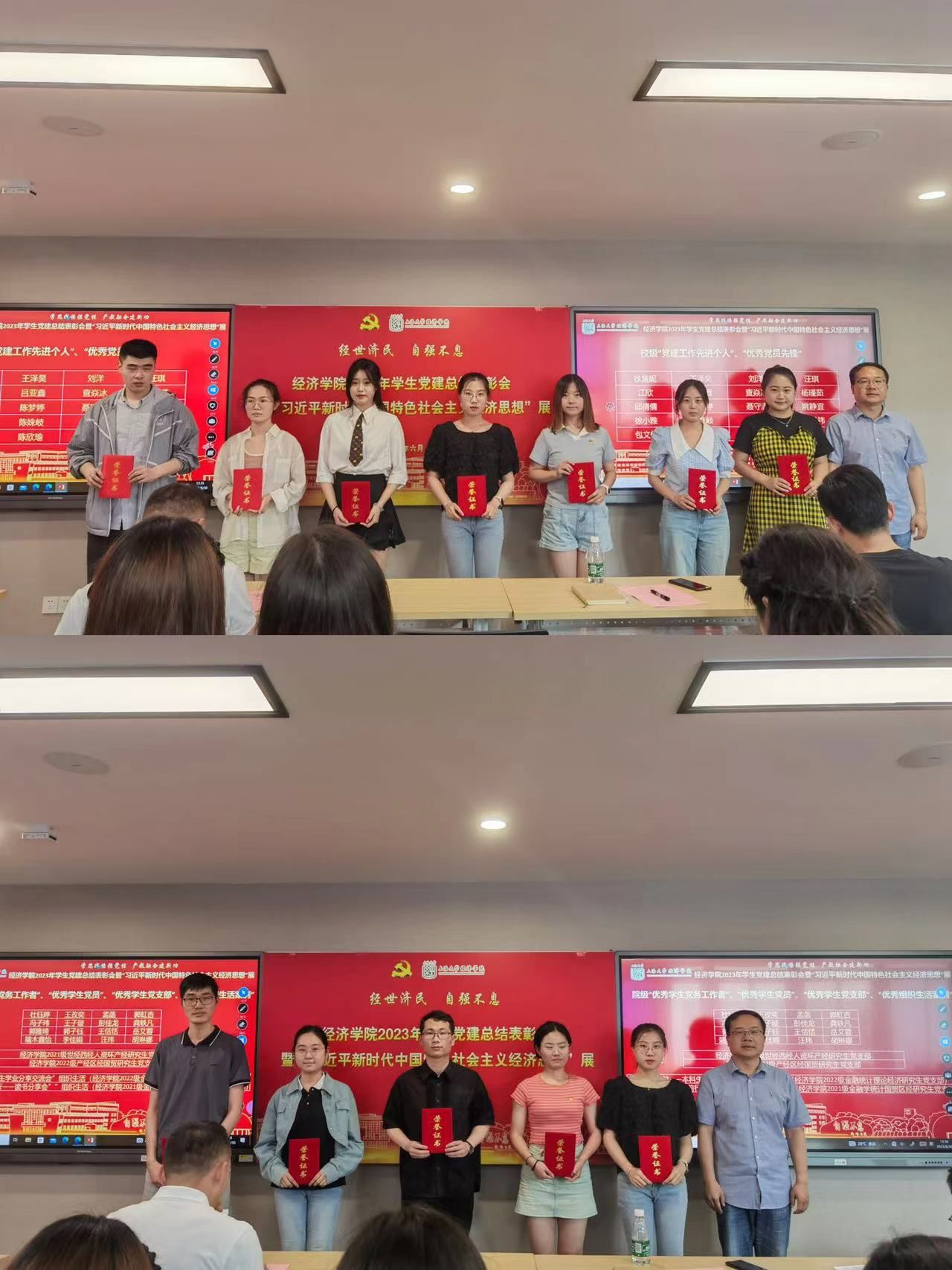 2023年是全面贯彻党的二十大精神的开局之年,正值学习贯彻习近平新时代中国特色社会主义思想主题教育全面开展之际,为庆祝中国共产党成立102周年,传承中国共产党经世济民初心,引导全院经院学子进一步坚定理想信念,经济学院于2023年6月30日下午在经管楼580召开经济学院2023年学生党建总结表彰会暨习近平新时代中国特色社会主义经济思想展。学院党委副书记、常务副院长聂永有,学院党委副书记、副院长冯玉鑫,学院研究生党建中心主任夏唯伟,学院研究生辅导员亢凯、林志强、张博扬出席会议。学院全体研究生、本科生获奖党员以及毕业生党员参加会议。会议由学院研究生党建中心副主任姚烨主持。