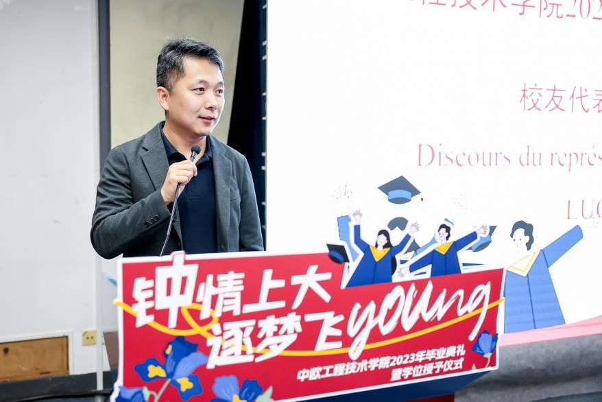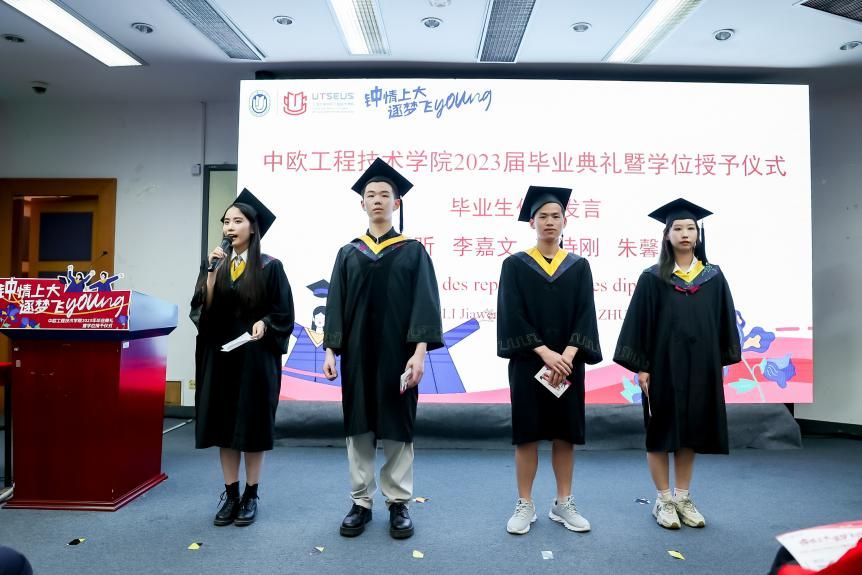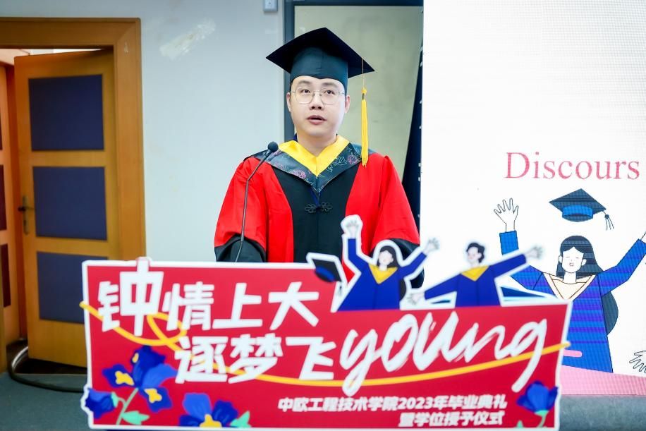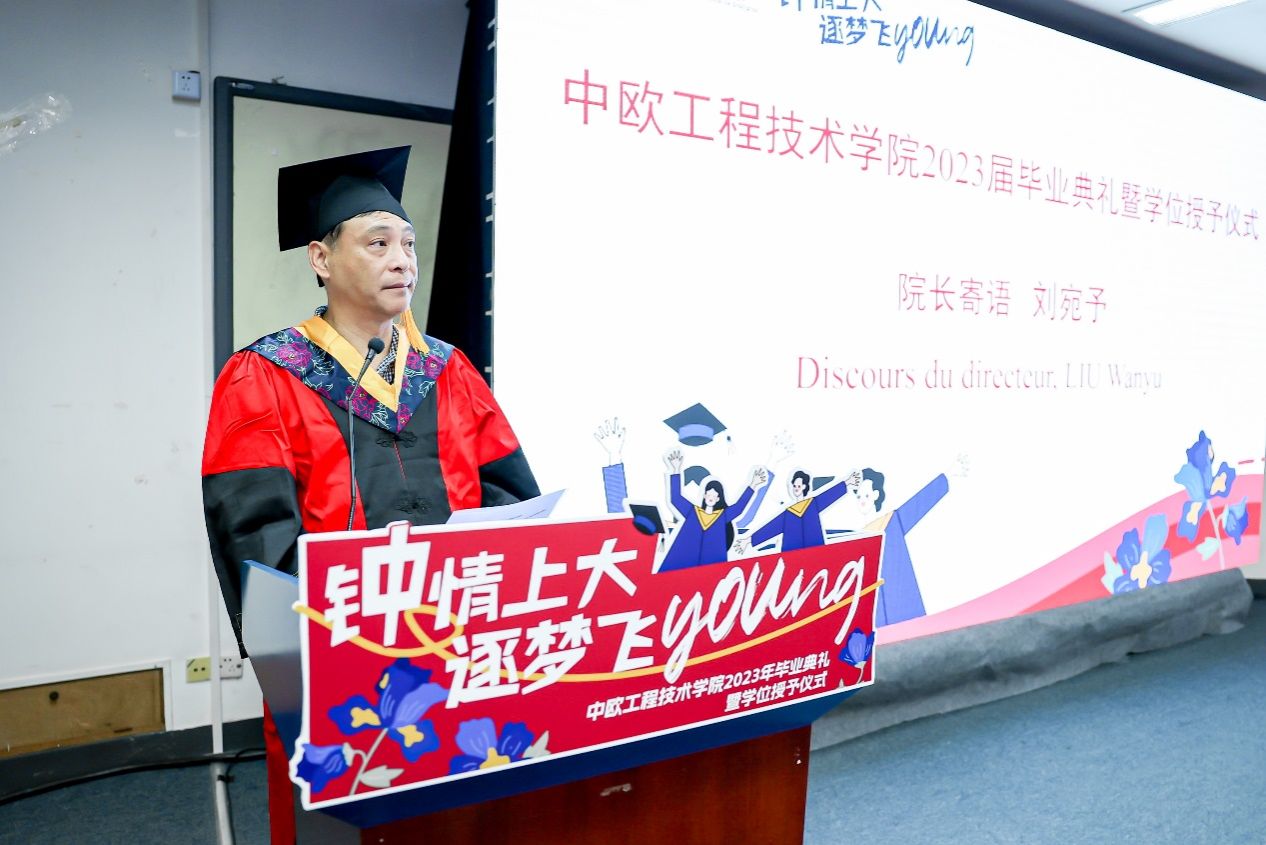 7月3日13时30分,上海大学中欧工程技术学院2023届毕业典礼暨学位授予仪式于宝山校区J102礼堂举行。中欧工程技术学院党委书记刘建勇,执行院长刘宛予,法方院长FabienPfaemder,法方副院长MinassianLaureCaroline,副院长徐韬,副院长王灵,党委副书记、副院长周轶,挂职副院长许婧靓,专业课教师杜水淼等教师代表,2005级校友罗江南,全体本科毕业生,部分毕业生家长以及往届未能参与的学长学姐出席了本次活动。典礼由2023届本科毕业生闫华杰主持。大家共聚欢聚一堂,一同怀揣着毕业的喜悦,共同分享这份属于所有毕业生温暖和幸福的毕业典礼。