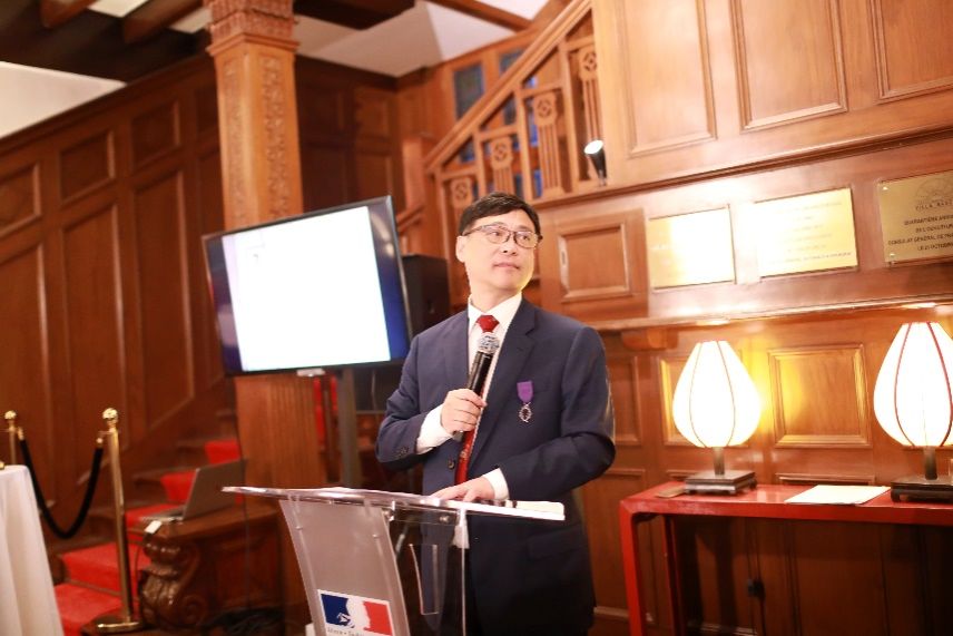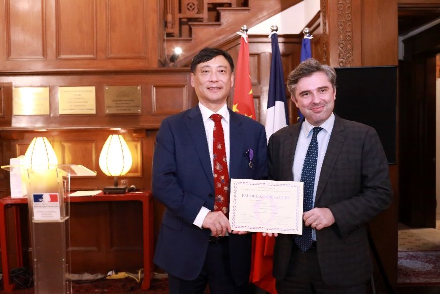 7月5日,上海大学中欧工程技术学院执行院长刘宛予教授在法国驻上海总领事官邸巴塞别墅举行的盛大仪式上,获颁法兰西学术棕榈骑士勋章,以表彰他在教育领域的卓越成就和对中法交流合作做出的杰出贡献。