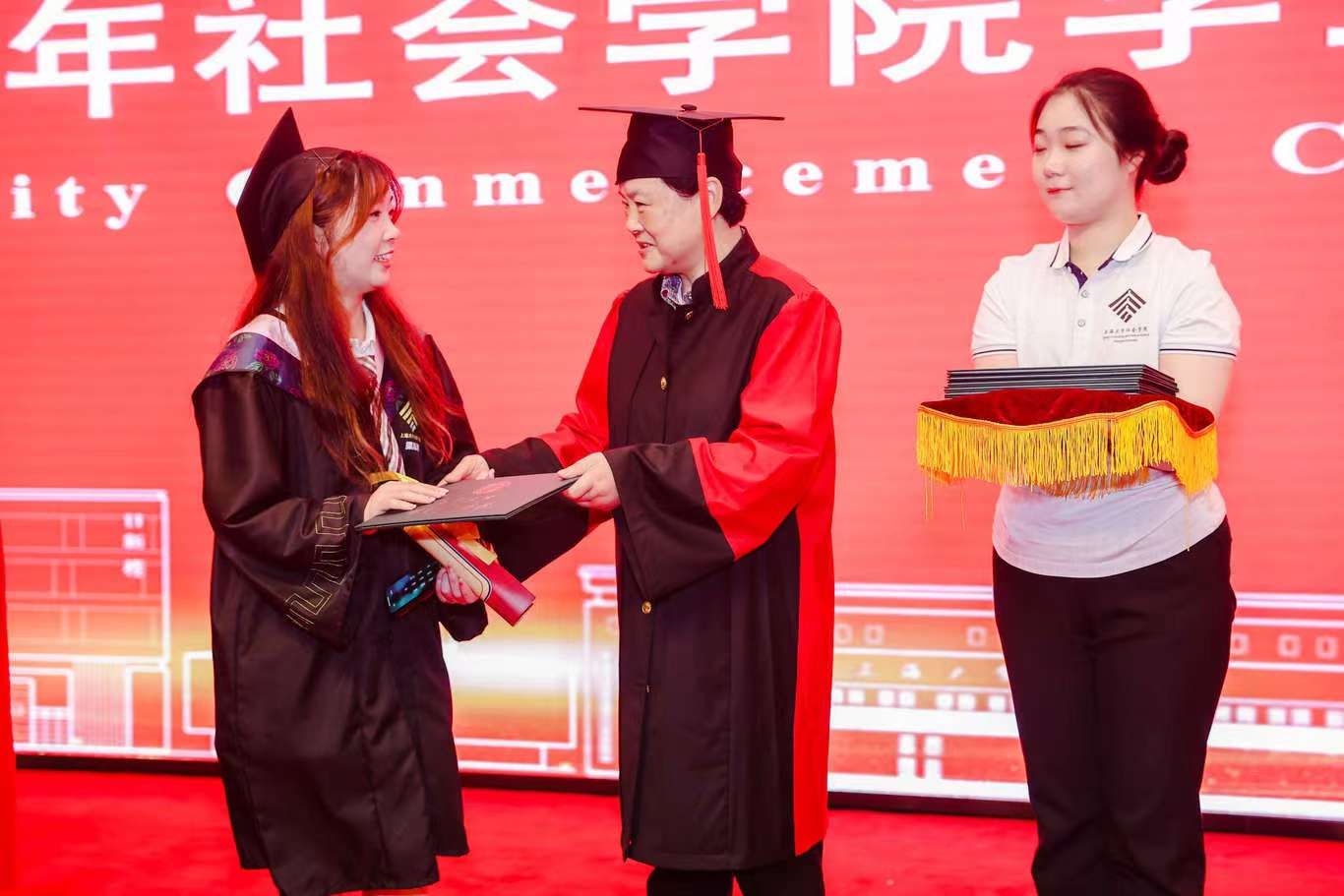 校党委副书记、纪委书记段勇,上海大学社会学院学科带头人、上海研究院第一副院长、上海大学“伟长学者”特级岗教授李友梅,社会学院党委书记杨锃,社会学院院长黄晓春为毕业生们逐一授予学位证书,并拨穗正冠,赠送贺信与毕业礼物。