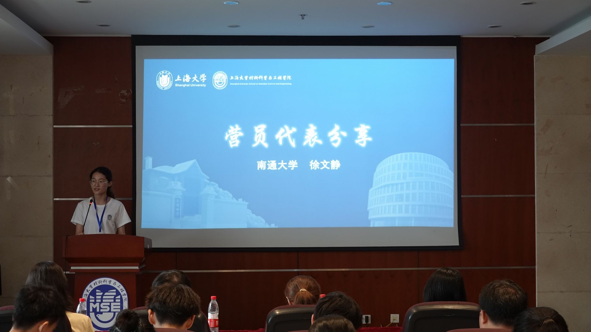来自南通大学的徐文静作为本期夏令营优秀营员代表发言,分享了夏令营期间的心得体会,并向夏令营期间辛勤付出的材料学院师生表示感谢。