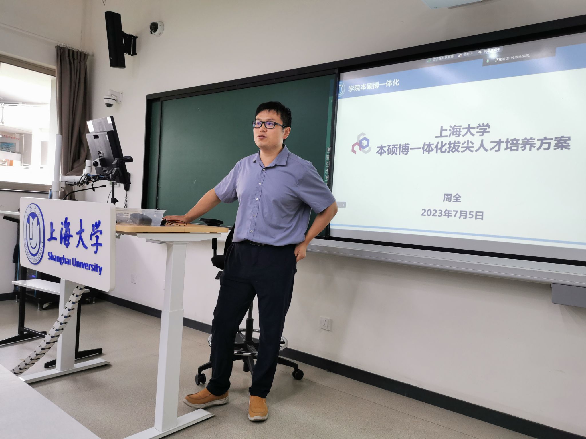 7月5日上午9时,夏令营开营仪式在D113教室举行,钱伟长学院党委副书记、院长周全,党委副书记、副院长沈青松,副院长任伟,辅导员魏仲奇、周玫及全体营员、观摩学生共同参加,开营仪式由沈青松主持。沈青松老师首先对各位同学的参与表示欢迎,对于目前钱伟长学院升学情况尤其是考研形势做了简单介绍与分析,并介绍了本次夏令营的基本背景情况。随后,周全院长详细介绍了最新的上海大学本硕博一体化拔尖人才培养方案。周全院长表示,该方案是培养创新人才、提高创新能力,深化研究生培养模式改革、完善钱伟长学院拔尖人才培养机制,试点探索在基础学科领域招收优秀本科生直接攻读博士学位的一项重要举措。通过探索实施本硕博一体化贯通培养模式,强化系统设计,整合优质资源,完善体制机制,实现本科、博士阶段课程学习和科学研究的深度融合与无缝衔接,可为钱伟长学院有志于科学研究的学生提供更为广阔的发展平台。