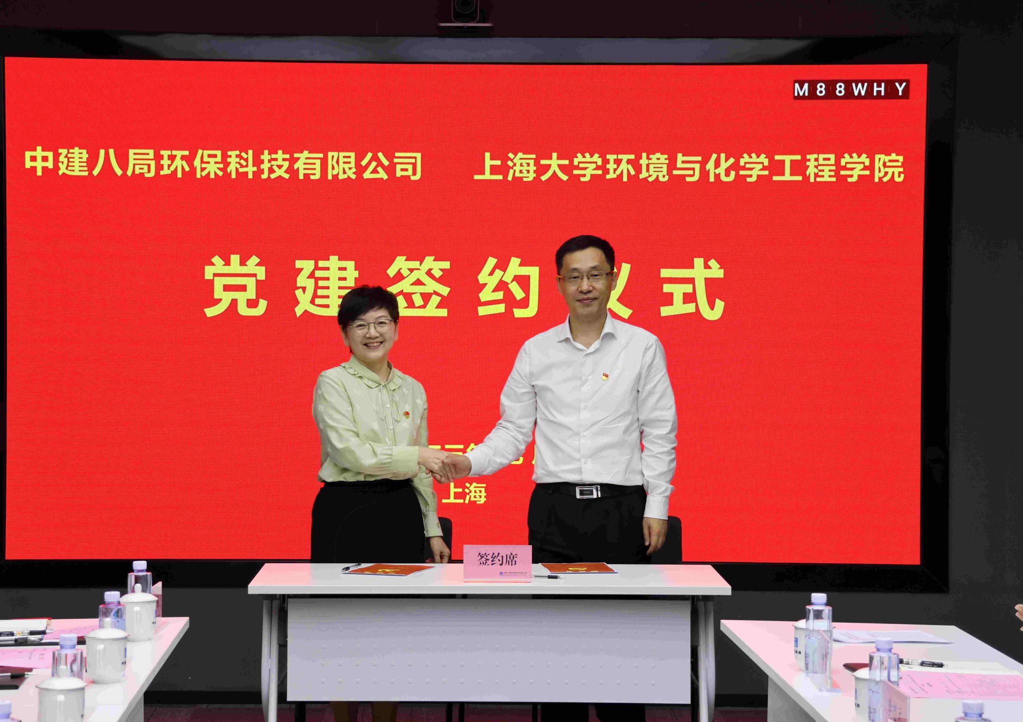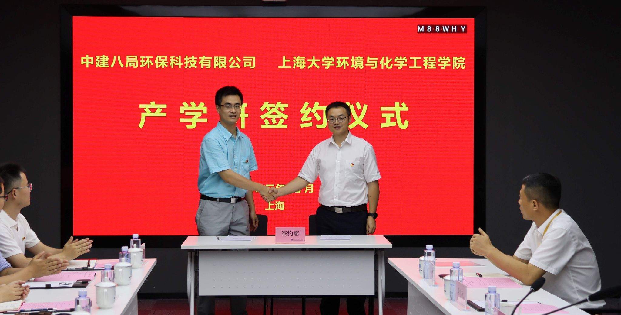 为持续推动学习贯彻习近平新时代中国特色社会主义思想主题教育走深走实,以高质量党建引领人才协同培养、科技联合攻关,助力区域生态文明建设,7月7日,上海大学环化学院党委书记钱冬英带队赴中建八局环保科技有限公司开展共建签约活动。中建八局投资发展公司党委书记、董事长贾海庆,环保科技有限公司董事长、总经理黄相锋等热情接待了钱冬英一行。会议由中建八局环保科技有限公司总工程师李忠元主持。