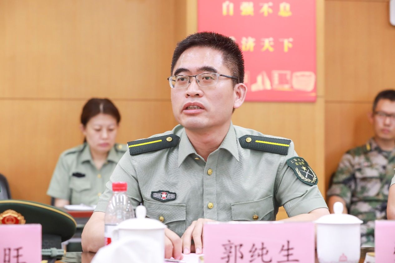 军训师副政委、微电子学院党委书记、党政办公室副主任、嘉定校区综合办公室主任郭纯生汇报嘉定战区的相关情况。