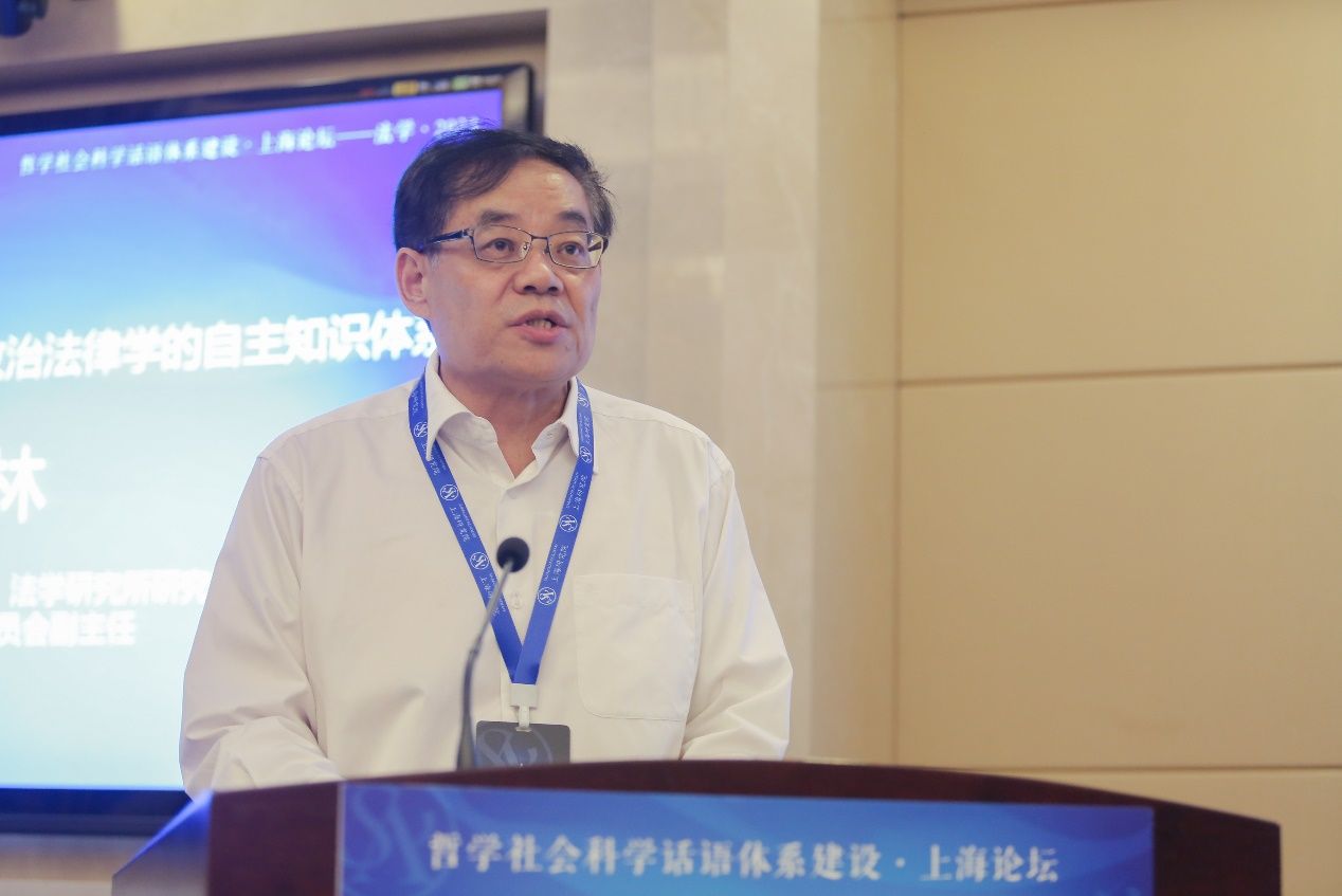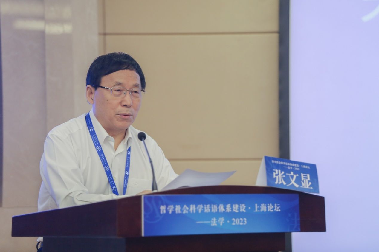 张文显以《关于中国法学自主话语体系的几点认识》为题做特邀报告。他指出,中国法学话语体系是立足于中国法治经验和实践,由诸多关于法律、法治、法理的理论和信念所构成的理论体系、价值体系和表达体系,以特定的概念、范畴、用语集中凝练地表达了我国在全面依法治国、建设法治中国新征程上的法律观、法治观、法理观。法学话语体系担负着向全世界传播法律真理、捍卫法律真理、维护法治尊严的宏大理论抱负。他从五个方面探讨了法学话语体系建设的关键问题:一是法学话语体系的主要特征。法学话语体系是政治性与学术性的有机统一,法学话语体系必须具备明确的政治立场、强大的理论力量和深远的社会影响。二是法学话语体系的基本构成和主要载体,包括法律话语体系、法治话语体系、法理话语体系三个子体系。三是中国法学话语体系的三大来源,分别是马克思主义法学理论、中华传统法律文化和西方优秀法学理论。四是新时代法学话语体系的理论内核与支撑。习近平法治思想是中国法学话语体系的理论内核,是中国式法治现代化的理论表达,是全面依法治国的根本遵循。五是加快建构中国法学自主话语体系的重要意义。构建中国法学话语体系,有利于占领世界法学话语体系高地,掌握话语主动权。