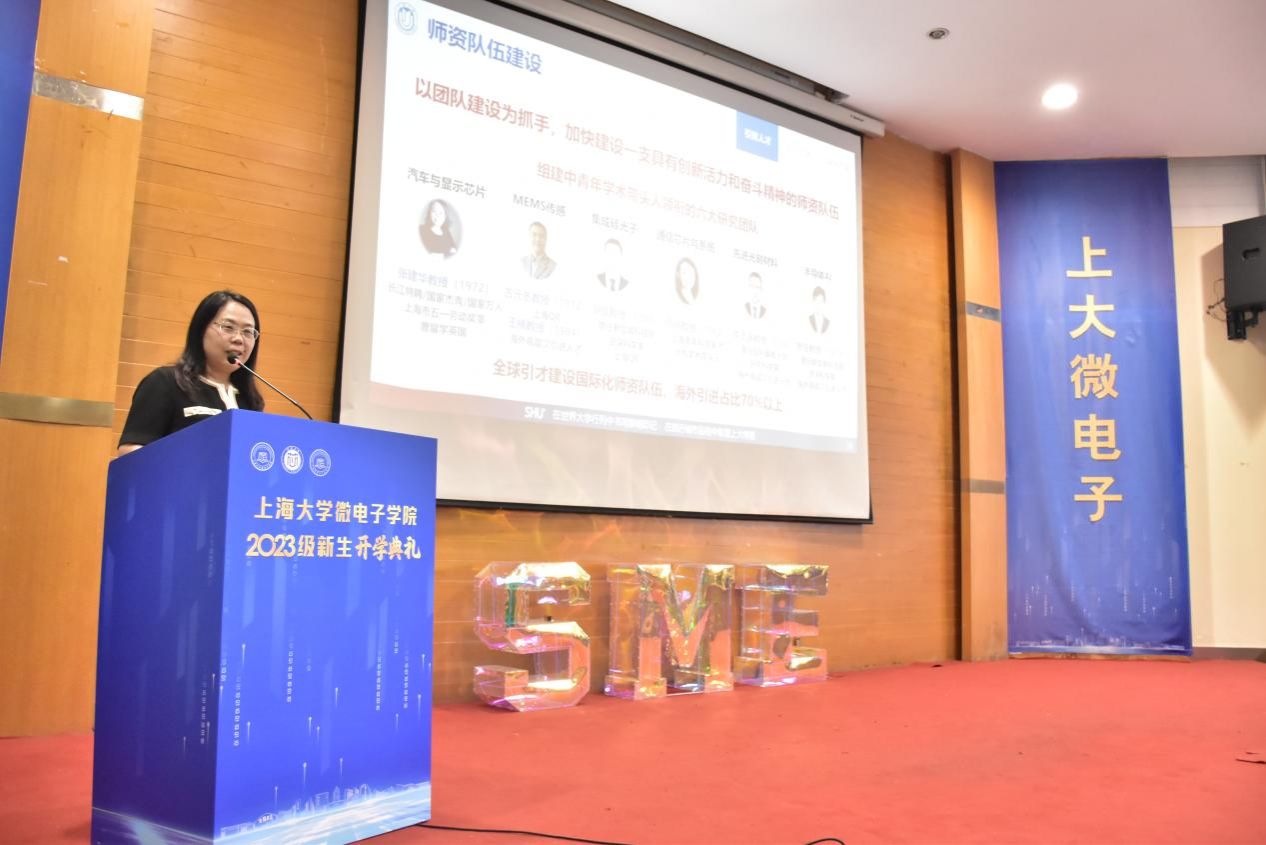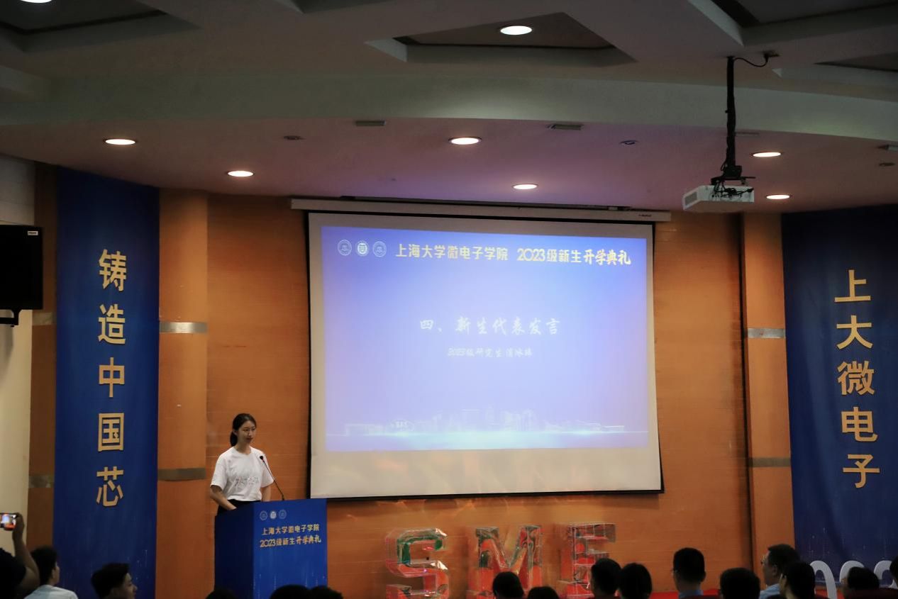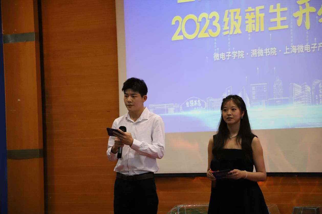 8月27日上午,上海大学微电子学院、溯微书院、上海微电子产业学院2023级本、硕、博新生开学典礼在嘉定校区图书馆报告厅举行。上海大学副校长汪小帆、微电子学院党委书记郭纯生,溯微书院院长、微电子学院执行院长张建华,溯微书院执行院长、微电子学院党委副书记、副院长袁铭,微电子学院副院长胡挺、周婷、路秀真,校党政办主管赵志华出席典礼,教师代表任开琳副教授、学院辅导员、全体2023级新生共同参加活动。本次典礼由21级硕士研究生付涵博和23级硕士研究生王飞主持。