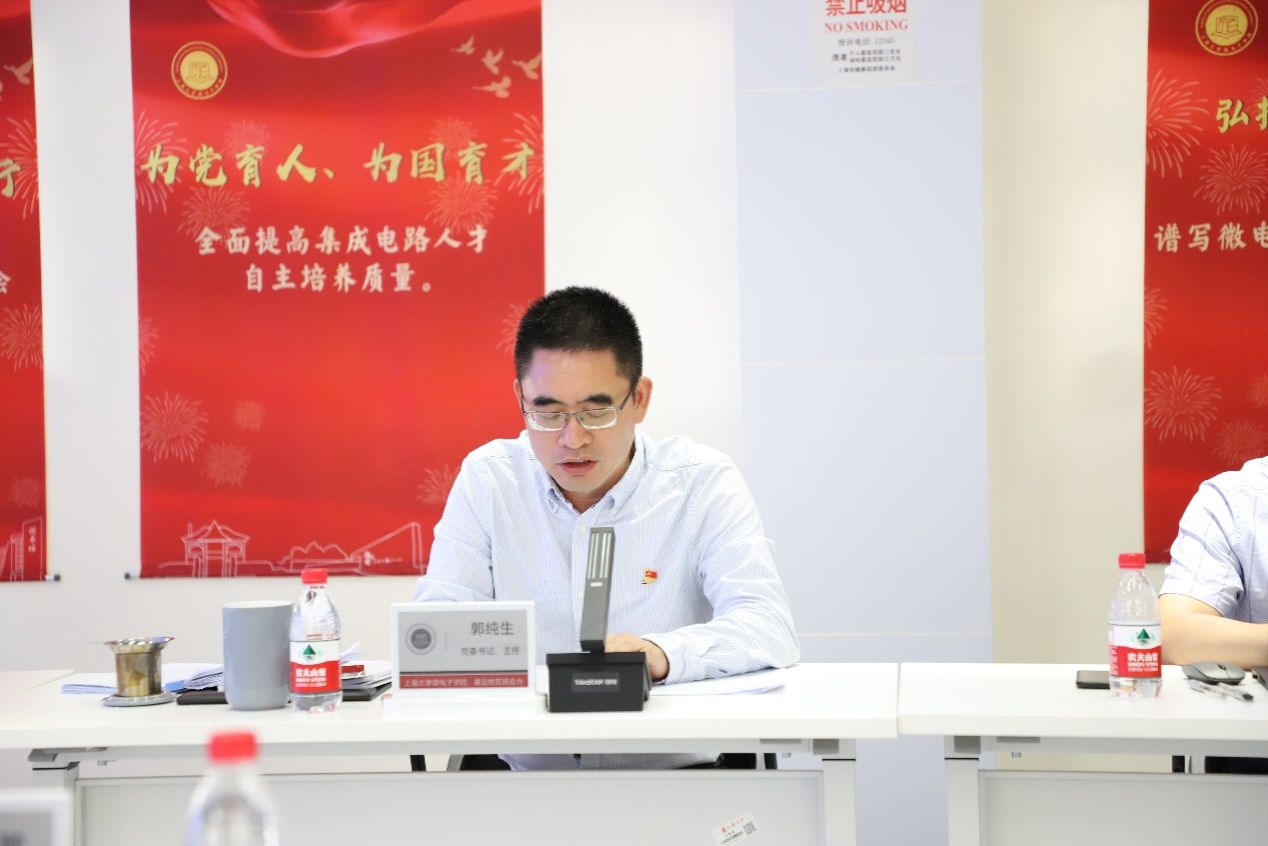 郭纯生代表班子作了表态发言。他代表学院领导班子,对市委巡回指导组、校领导、组织处、主题教育联络组到会指导以及在会议前期给予的充分指导表示衷心的感谢。学院党委将以此次主题教育为契机,进一步在以学铸魂、以学增智、以学正风、以学促干上下深功、求实效,更加系统把握习近平新时代中国特色社会主义思想的科学体系和精髓要义,始终保持“起步即冲刺”的奋斗姿态,结合学校“贯彻、统筹、奋进”的总体部署,继续探索主题教育的有效做法和特色亮点,把集成电路国家战略时刻扛在肩上,把“五五战略”的要求落实在具体的行动上,不断把主题教育的成效转化为推进学院高质量发展的强劲动力,为学校建设世界一流大学的目标努力奋斗、再立新功。