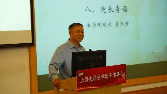 法学院院长李凤章教授为法学院新生致辞。他表示,作为一名法学院学生,首先要相信自我,满怀希望,其次要学好法律,脚踏实地。相比于专门法学院校,我们得天独厚的优势在于,我们的同学并非我们的竞争对手,而很可能成为我们的甲方,看见我们的优势,努力提升自己的专业素养是每一名上海大学法学生的康庄大道。作为一名新生的法律人,李凤章院长提出了以下要求:首先是专业,法学专业有着不同于其他专业的思维方式、独立人格,本领专业,才能做到专业的人做专业的事。其次是理性传统,最后是逻辑。知敬畏、有理性、守规则 、行正义、有坚持,这是每一位上大法学生的恪守。