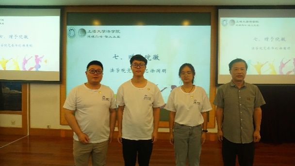 院徽,是我们作为上海大学法学院学生身份的象征,更是对于上海大学法学院精神的承载。在大家激烈的掌声中,党委书记徐国明老师为学生代表赠予了院徽。