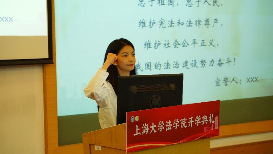 在这秋风送爽,硕果飘香的季节,法学院本研师生欢聚一堂,于9月1日下午,在宝山校区J202方润华讲堂举行2023年新生开学典礼暨研究生导师见面会。法学院党委书记徐国明老师,法学院院长李凤章老师、法学院党委副书记副院长于伟老师、法学院副院长袁真富老师、优秀校友代表、泰和泰(上海)律师事务所律师、高级合伙人应莹律师、泰和泰(上海)律师事务所专家顾问谢云泽律师,学院全体教师和新生参加。开学典礼由法学院2023届硕士研究生连顺祥主持。