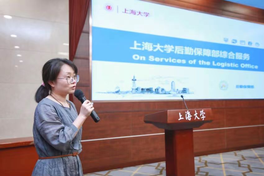 后勤保障部党委副书记张萍以《上海大学后勤保障部综合服务》为题,从八个方面详细介绍了其部门的职能定位,以及为师生提供的一系列校园服务,从住宿到餐饮,从办公会议场所到校车路线,从医疗服务到安全管理,逐一进行了针对性讲述。