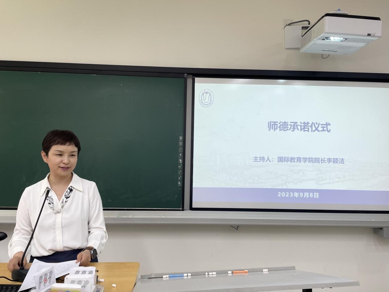 李颖洁院长主持了师德师风承诺仪式。李院长带领与会老师共同学习2023年上海大学师德警示教育资料,强调作为教师应该“知准则、守底线、强师德、正师风”,做到“严于律己,清廉从教”。全体教师现场签署了《上海大学国际教育学院师德师风承诺书》。