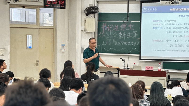 9月8日下午,社区学院党委书记邓志瑞走进新生活动课,在宝山校区DJ108教室为人文社科大类和理工大类的学生带来了一场题为“How to have a valuable and successful college life?”的励志讲座。
