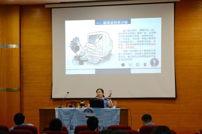 讲座过程中,赵警官向同学们介绍了七种常见的诈骗类型,通过真实案例对同学们进行宣导,通过阐述受害人的受骗过程和被骗的亲身经历,向同学们讲述新型电信诈骗的始末初衷,深度解析骗子的犯罪过程,同学们纷纷点头表示受益匪浅。