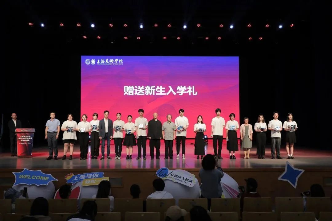 上海美术学院学术委员会主任冯远、上海美术学院院长曾成钢、上海美术学院党委书记陈静、上海美术学院执行院长金江波和上海马利画材股份有限公司党支部书记、董事长蒋熙洲先生为新生代表赠送了入学礼物,他们勉励新生们在人生新阶段树立人生大目标,把学习目标与人类、国家和民族发展结合起来,把小我融入大我,在艺海行舟之路上扬帆起航,成为对国家、民族有用的新时代艺术人才。