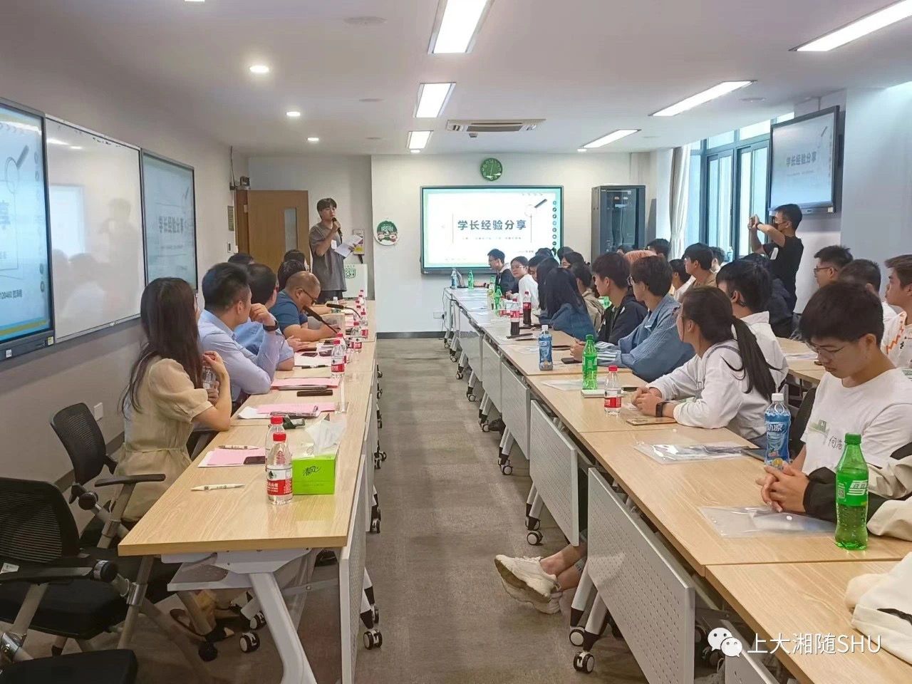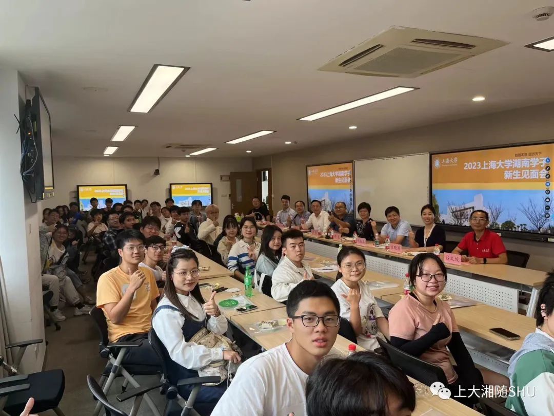 中秋佳节来临之际,上海大学湖南招宣组在经济学院580智慧教室举行2023级湖南新生座谈会。上海大学招毕办副主任卢欣,上海大学招生宣传主管叶亮,上海大学经济学院党委书记、湖南招宣组组长孟添,上海大学经济学院副院长刘康兵,上海大学经济学院办公室主任宋晓颖,上海大学经济学院招宣组成员吕文俊、廖浩岚、吴琳琳、杜天宇和2023级湖南新生及高年级湖南学生参加了本次活动。见面会由经济学院党委副书记、副院长,湖南招宣组副组长冯玉鑫主持。