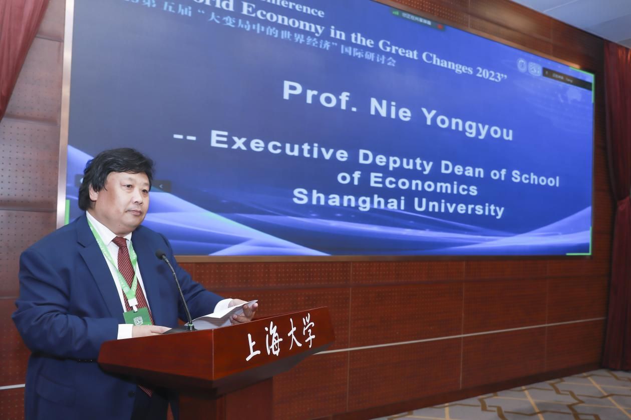 上海大学党委常委、副校长聂清代表本次会议的主办单位发表致辞,并对与会的各位学者表示诚挚的问候。聂校长表示近三年的疫情使大家很久没有进行线下的学术交流,此次大会是一个难得的机会。近期以来,上海大学也一直致力于加强与国外高校的联系,并积极推动各学院与国际同行的交流合作。聂校长还指出:本次研讨会的举办不仅符合我们的学术理念,也是为了适应全球经济格局不断变化的趋势。因此,希望能够借鉴各位专家的见解,共同探讨世界经济的走向,并希望加强不同背景学者之间的交流与合作,进而促进知识的传播和学术的发展。