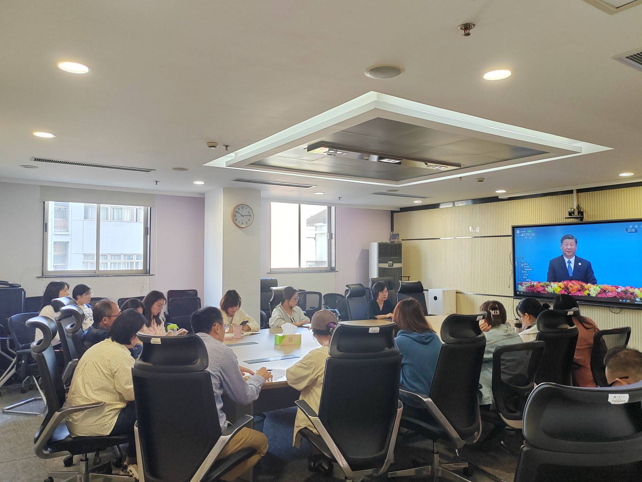 10月18日上午10点,第三届“一带一路”国际合作高峰论坛开幕式在北京举行。中共中央总书记、国家主席、中央军委主席习近平出席开幕式并发表主旨演讲。为更好地学习讲话精神,指导开展教育对外开放工作,国际部党委通过中心组学习、支部学习等形式组织全体中外师生观看了开幕式,学习了讲话精神。