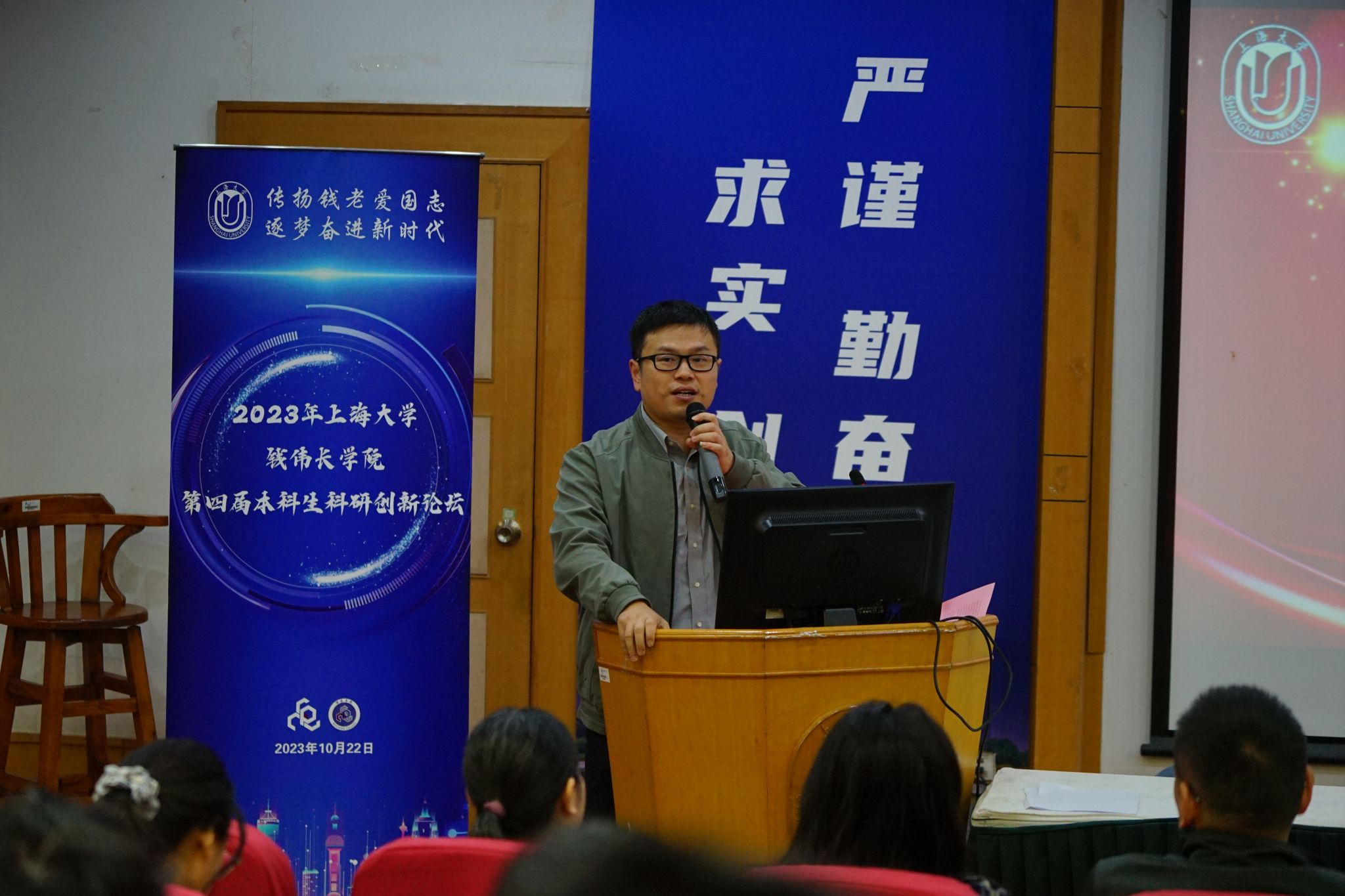 10月22日上午,“传扬钱老爱国志,逐梦奋进新时代”2023年上海大学钱伟长学院第四届本科生科研创新论坛在校本部J楼隆重举行。上海交通大学郑杭教授,复旦大学魏益民教授,华东师范大学施毅研究员,同济大学刘睿教授、韦萍教授,上海理工大学顾长贵教授,上海应用技术大学邱翔教授,鸿之微科技(上海)股份有限公司副总经理龚奎、高级工程师孙旸云丽等专家应邀担任评委。同时,论坛还邀请到了首届国家自然科学基金青年学生基础研究项目获得者复旦大学本科生单佳骊和上海交通大学本科生孔淇,以及钱伟长学院本科生闫雪涛作学生科研经验分享。钱伟长学院党委书记、校团委书记冯凌燕,钱伟长学院党委副书记、院长周全,钱伟长学院副院长许新建,钱伟长学院各年级学生出席了本次论坛。论坛由钱伟长学院党委副书记、副院长沈青松主持。