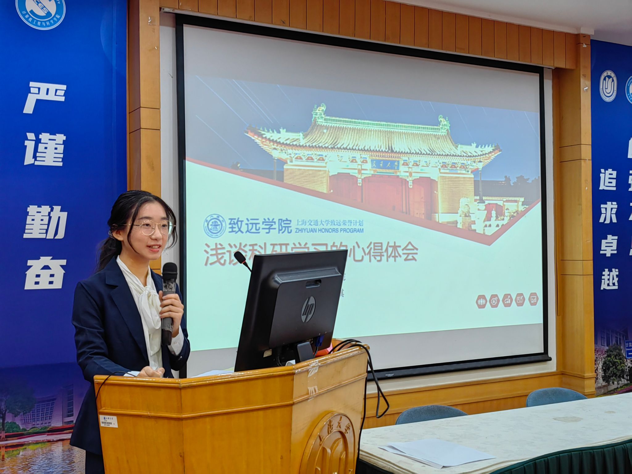 随后,三位朋辈嘉宾进行了科研项目展示与科研经验分享。单佳骊目前在复旦大学数学科学学院魏益民教授的指导下开展整体最小二乘问题的随机算法研究,并尝试探索计算数学领域。在讲述自己的科研和成长经历时,她提到要养成阅读英语文献的习惯,并时刻保有探索精神;同时需要与导师及时沟通,保持密切联系,通过导师的帮助能少走很多弯路。她倡议同学们要坚持不懈,认真选题;勇敢追寻,耐心探索,不因挫折而质疑自己;平衡学业与生活,享受科学探索的过程。最后她祝愿同学们都能在自己热爱的领域走得又远又好。孔淇目前在上海交通大学化学化工学院张万斌教授课题组开展科研。她介绍了自己的研究方向与前期成果,并提出应该对世界和科学保持好奇与兴趣,不要把自己的研究兴趣局限于所学学科,而要打下扎实而广泛的学科基础。她也建议同学们要寻找自己的兴趣点,多参加各类学术交流活动。最后也提到了同学们要在实践中学习,遇到问题并尝试分析、解决是一种很好的成长方式。闫雪涛目前在上海大学材料基因组工程研究院(MGI)冯凌燕教授课题组开展科研,并将继续在MGI直接攻读博士学位。她从大二开始接触科研项目,推免后将继续研究原有的方向,整个科研过程比较连贯,她向大家分享了本科生如何从零基础开始参与科研工作,并以自己为例为同学们生动地再现了整个学术项目从立项、研究到结项等全链条的过程,同时向大家推荐了相应的科研实用工具和科研方法。