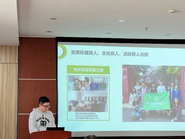 上海大学材料科学与工程学院辅导员张望做了《探索功能型党组织建设路径,助力书院党建育人工作发展》主题分享。张望老师以日新书院日新功能型党支部为例,分享了日新书院在一站式社区党建工作中的实践探索。并指出了“日新问渠”党建育人书院辅导员工作室在书院党建工作中的作用发挥,强调了双院联动的重要意义。