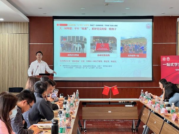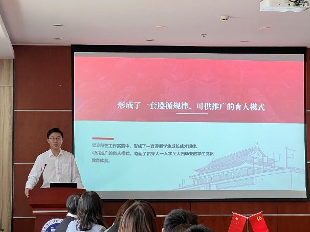 同济大学外国语学院团委书记刘佳煊作了题为《善用哲学思维善筑支部堡垒——如何做好“样板支部”建设刍议》的主旨报告。刘佳煊老师介绍了党支部对标“七个有力”的实践,将哲学思维运用到党建工作中,形成了一套遵循规律、可供推广的育人模式。组织了师生同行、同心、同向的理论探索,凝聚了学生理想信念、专业学习的系统融合