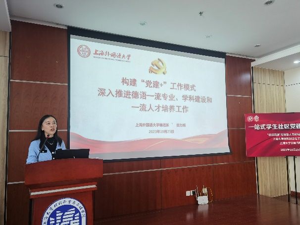 上海外国语大学德语系党委副书记、学生党支部书记田力娜以《“党建+”模式引领院系党建与学科发展双融合》为题,分享了一站式社区学生党建工作的经验。田力娜老师提出了“上下贯通、左右联通、内外融通”的“党建+”工作模式,此种工作模式推动了标准化规范化建设,发挥党组织的政治引领作用,成果丰硕,引领立德树人新格局,培育诠释世界的“时代新人”。